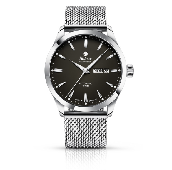 This entry-level model from Tutima is named after the German word "Flieger," which means "pilot." In recent years, casual color variations have been added, and the blue dial model in particular is refreshing and easy to match with any outfit. The dial has a gradient design based on the motif of the 1970s, giving it a nostalgic look. The in-dial displays the day/date, and you can choose to display the day in either English or German. It is also practical, with a water resistance of 10 ATM, a stainless steel case and strap, and the Milanese bracelet speaks of the watch's passion for making watches.