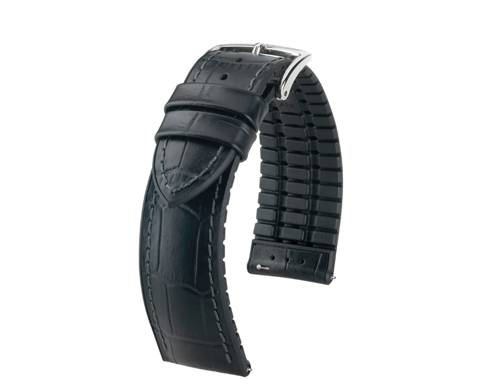 高級イタリアンカーフにナチュラルなアリゲーター柄を施した、落ち着いたセミマット仕上げのストラップです。