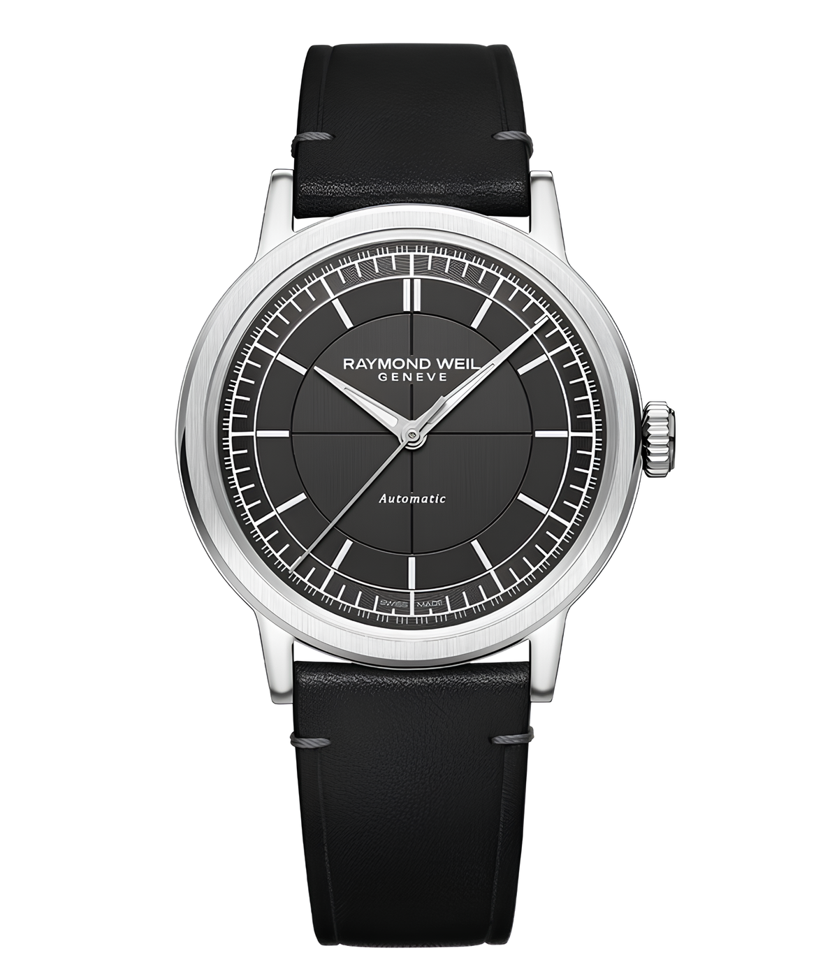 「ミレジム(millésime)」は、フランス語でヴィンテージを意味します。1930年代に流行したセクターダイアルや主にプラスチック製風防に見られたボックス型などの古典的なディティールに、現代の技術・素材・トレンドを交えるレイモンド ウェイル独自の解釈を加えた、「ネオ・ヴィンテージウォッチ」です。引き締まったブラックダイアルとシンプルなフェイスは、大人の遊び心へクールなスパイスを与えます。普段の装いにクールな印象を与える、スイス時計の小粋さを感じさせる貴重な一品です。