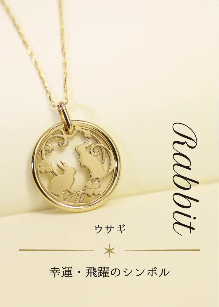 幸運と豊かさを運ぶといわれるウサギを、上品に刻んだコインチャーム。小さな跳ねる姿が、未来への軽やかな一歩を感じさせます。デイリーにもギフトにもぴったりのフェミニンな一本。