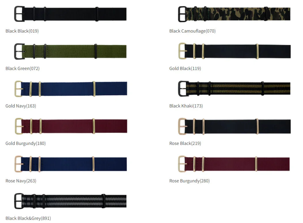 Navy、Burgundy はYG(金色)とRG(ローズ)の尾錠色のみになります。